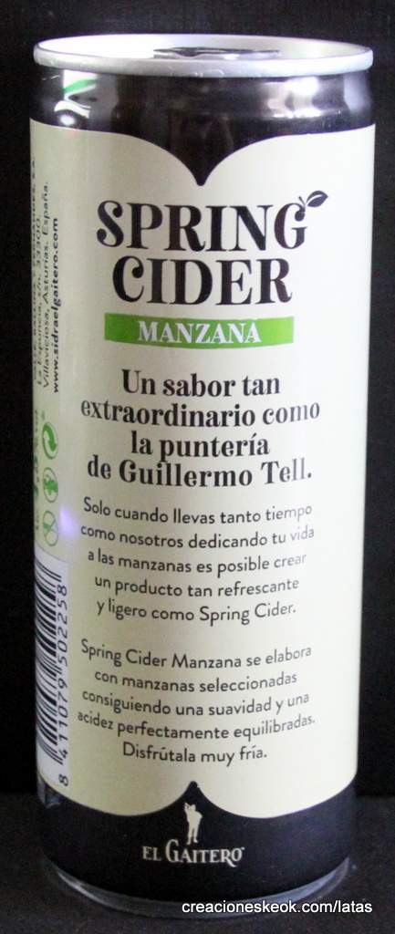 La sidra más fresca y ligera de El Gaitero se elabora con manzanas seleccionadas consiguiendo un suavidad y una acidez perfectamente equilibradas. Un sabor tan extraordinario como la puntería de Guillermo Tell. Gracias a su baja graduación alcohólica (4.5º) es una alternativa ideal para disfrutar de un aperitivo o durante un afterwork, perfecto para el "tardeo". Disfrutala muy fria, en vaso ancho con 2 piedras de hielo o directamente de la lata. Sin gluten. FECHA DE CONSUMO PREFERENTE: 2 años desde su envasado