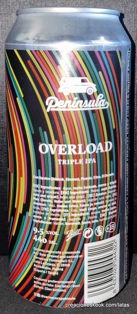 Overload es una Triple IPA de 9,5%, elaborada con lúpulos Chinook, Ekuanot, Mosaic, Citra y El Dorado. Una sobrecarga de lúpulo con mucho cuerpo, un punto cítrico y notas tropicales y fruta de hueso.