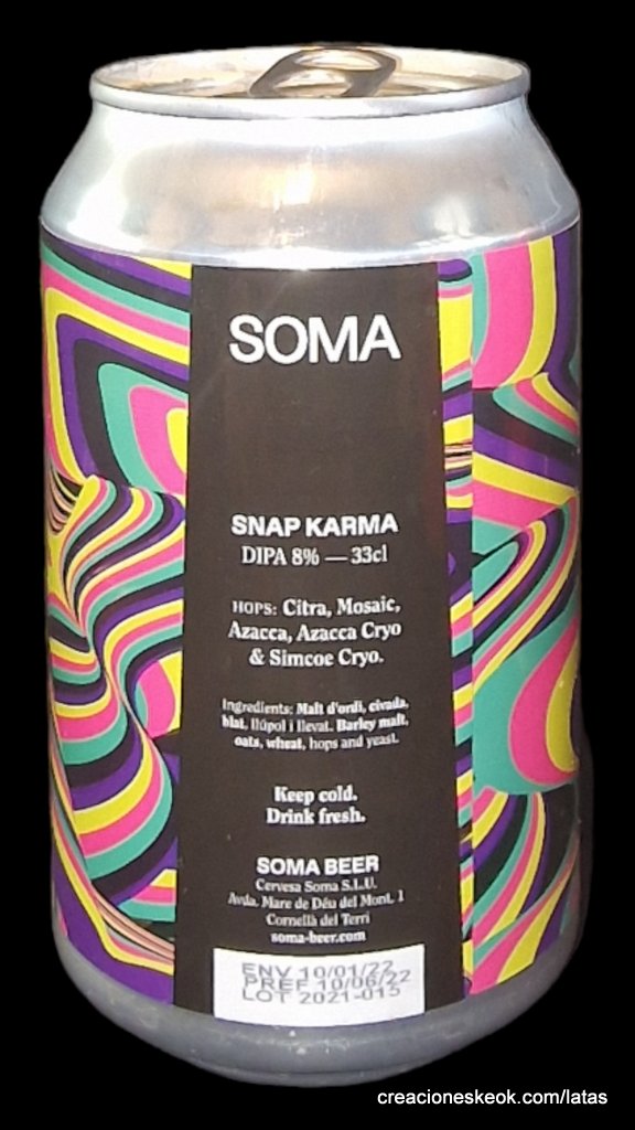 Snap Karma nueva DDH DIPA de 8% de alcohol, ahora a base de citra, mosaic, azacca y cryo simcoe.