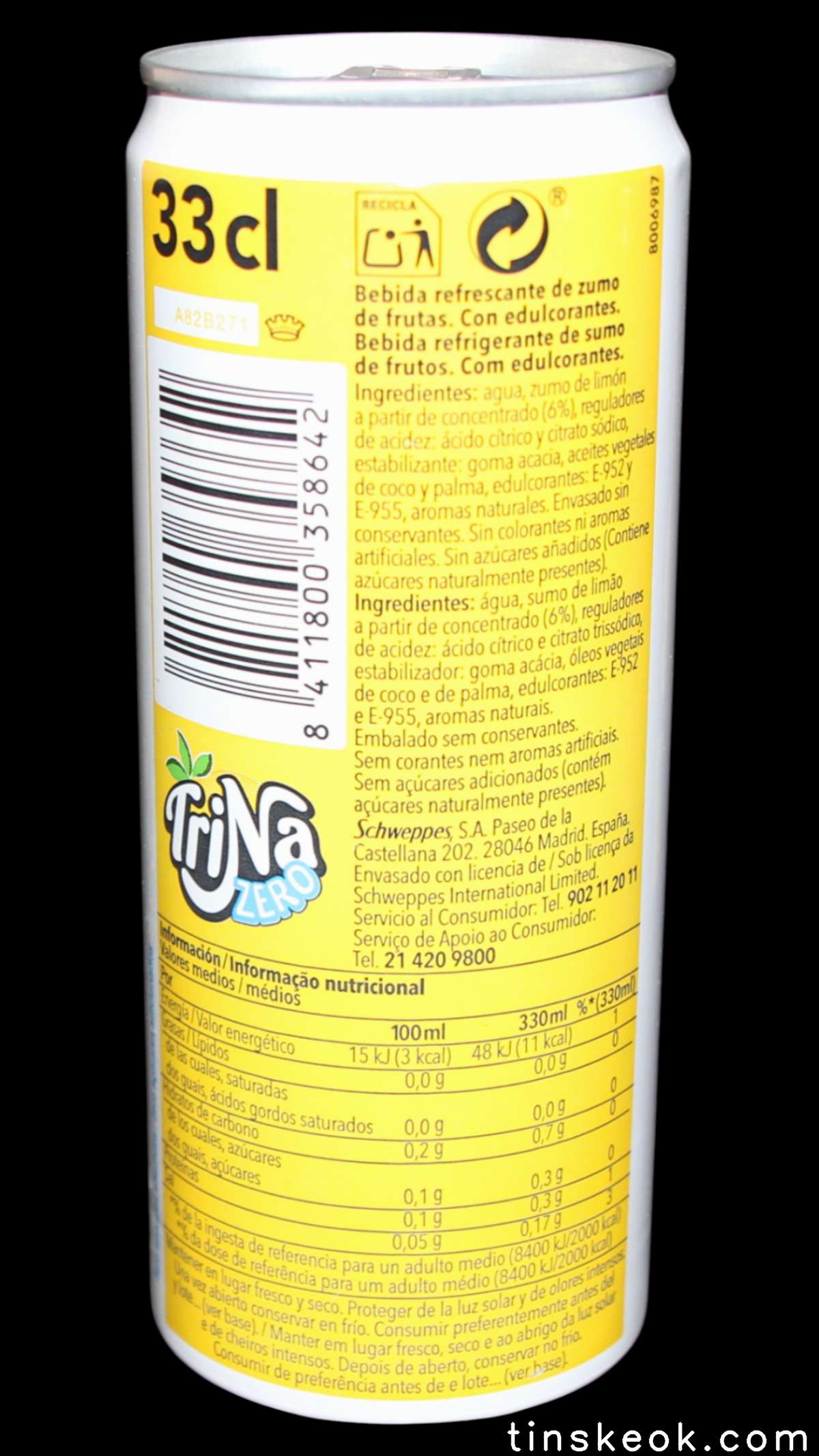 TriNa es una marca española de bebidas refrescantes sin gas. Fue el primer refresco de frutas sin burbujas en el mercado español sin gas, nacido en 1934 y con el nombre de TriNaranjus por su contenido: el zumo de tres naranjas. TriNa es una marca del grupo Schweppes Suntory España. Los orígenes de la TriNa se remontan a los años 30. Fue la creación de un pionero, el Dr. Trigo, que en 1934, desde su laboratorio de la calle Sagunto, lanzó en Valencia un refresco de naranja muy natural, sin burbujas, al que bautizó como Trinaranjus. Este nombre viene porque la base de su receta son tres variedades de naranja diferentes: Naranja Valencia, Salustiana y Cadenera. La compañía se expandió a lo largo de los años, hasta que en 1986 la marca renovó su imagen, su género (una Trina) y su nombre a TriNa. En 2009, Suntory Group adquiere la compañía Orangina Schweppes, y con ello, la marca TriNa. Este producto se comercializa en España y Portugal tanto en hostelería como en supermercados e hipermercados. Fuente : Wikipedia Leer un poco más de su historia