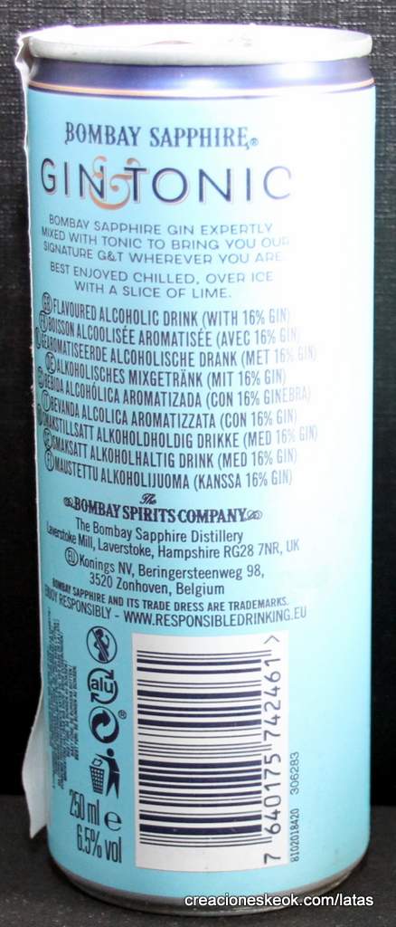 Combina la clásica London Dry Gin infusionada al vapor, con el equilibrio perfecto de tónica, para una experiencia de sabor superior sin renunciar a la máxima calidad. Este combinado on-the-go está elaborado para exhibir las notas distintivas de enebro y cítricos que caracterizan la ginebra BOMBAY SAPPHIRE® y no contiene ningún sabor o colorante artificial añadido.